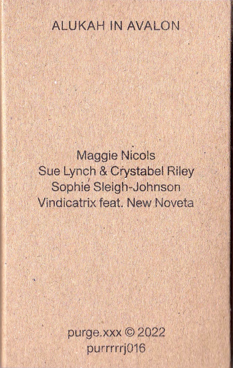Recorded live at Avalon Cafe in London for the launch of Room Sound by VINDICATRIX X NEW NOVETA (purrrrrj011), this cassette includes live performances by MAGGIE NICOLS, SUE LYNCH & CRYSTABEL RILEY, SOPHIE SLEIGH-JOHNSON, and VINDICATRIX featuring NEW NOVETA.